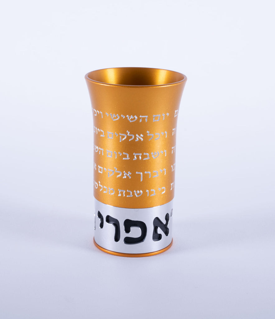 The entire Kiddush Blessing is engraved on the cup